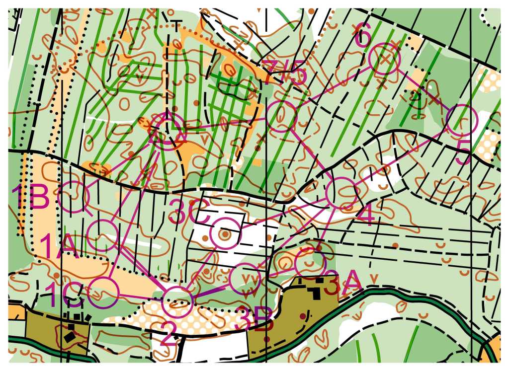 Øvelsen kan både gennemføres som træning af sprintstafet (sprintkort) og som stafet i skoven (skovkort), og stiller ikke krav til bestemt terræn.