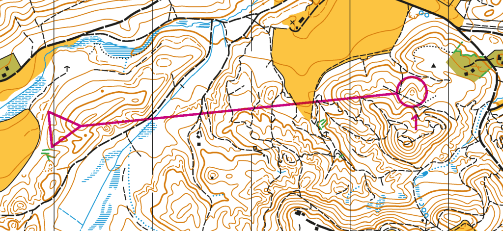 Løberne kan med fordel forsøge at finde toppen og bunden af kortudsnittet, inden de begynder at tælle, og finde ud af, om posten ligger højere eller lavere end startpunktet. Dette gør det nemmere at overskue, hvordan de forskellige dele af kurvebilledet vender.