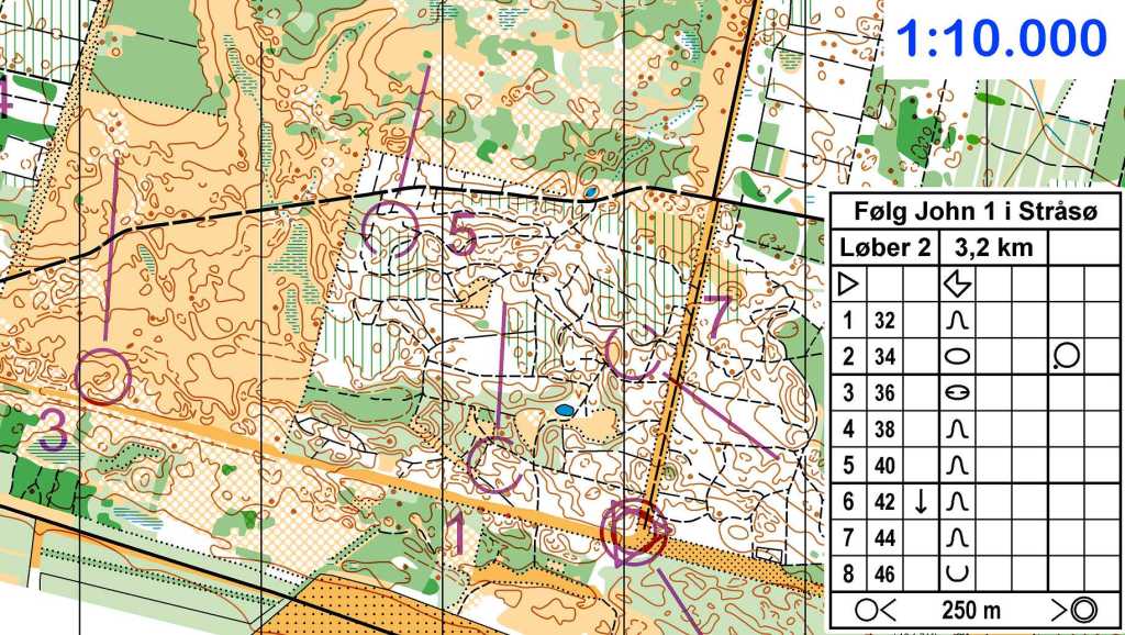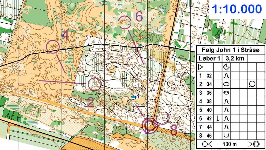 Følg John 2 og Omvendt Følg John er variationer af Følg John 1, men de to varianter har til formål at træne løberne i 25.B Visualiser en kortmodel, hhv. at træne løberne i 33.A Forkant vs. bagkant i orienteringen.