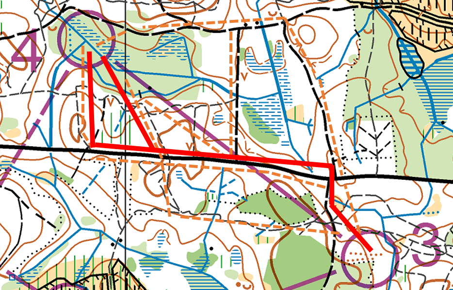 At løberne bliver opmærksomme på, at der på stræk ofte vil være mange forskellige alternative vejvalg mellem posterne.