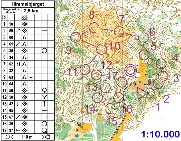 At træne løberne i posttagning på skrænter, både med postindløb oppefra, nedefra, på skrå og fra samme højde. Øvelsen træner også løberne i at identificere og bruge plateauer og terrasser som indløbspunkter, samt at holde højde hhv. løbe på skrå ad skrænter.