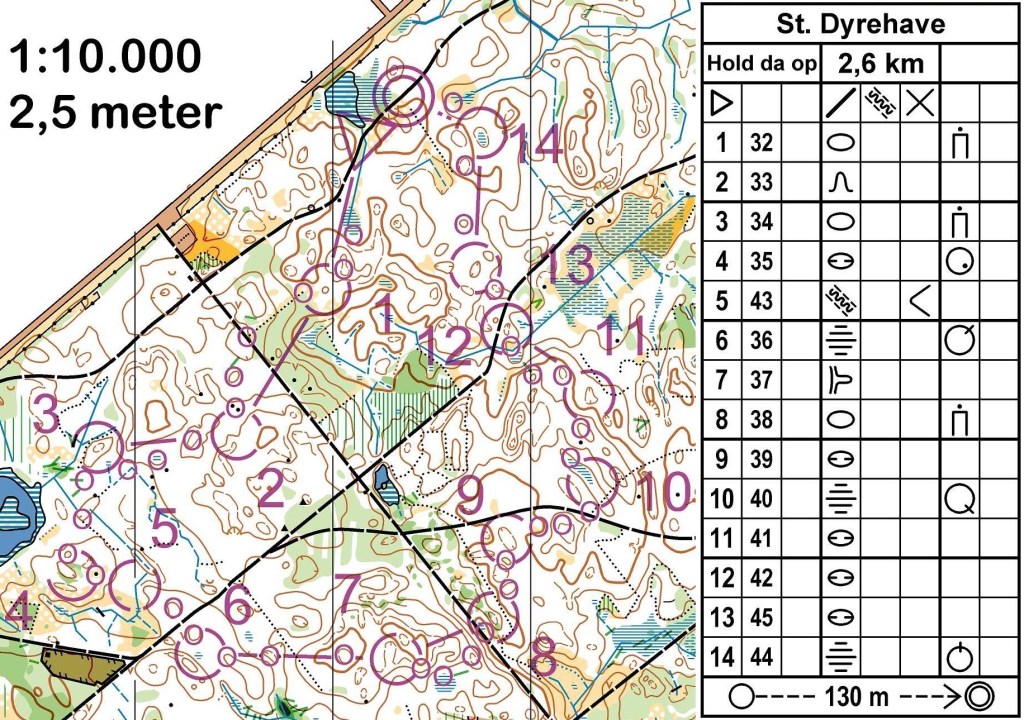 I eksempler i St. Dyrehave er der meget åbent og godt sigt, hvorfor det flere steder er muligt at anvende normalt mindre tydelige terrængenstande som holdepunkter – for eksempel de to sten lige før post 2.