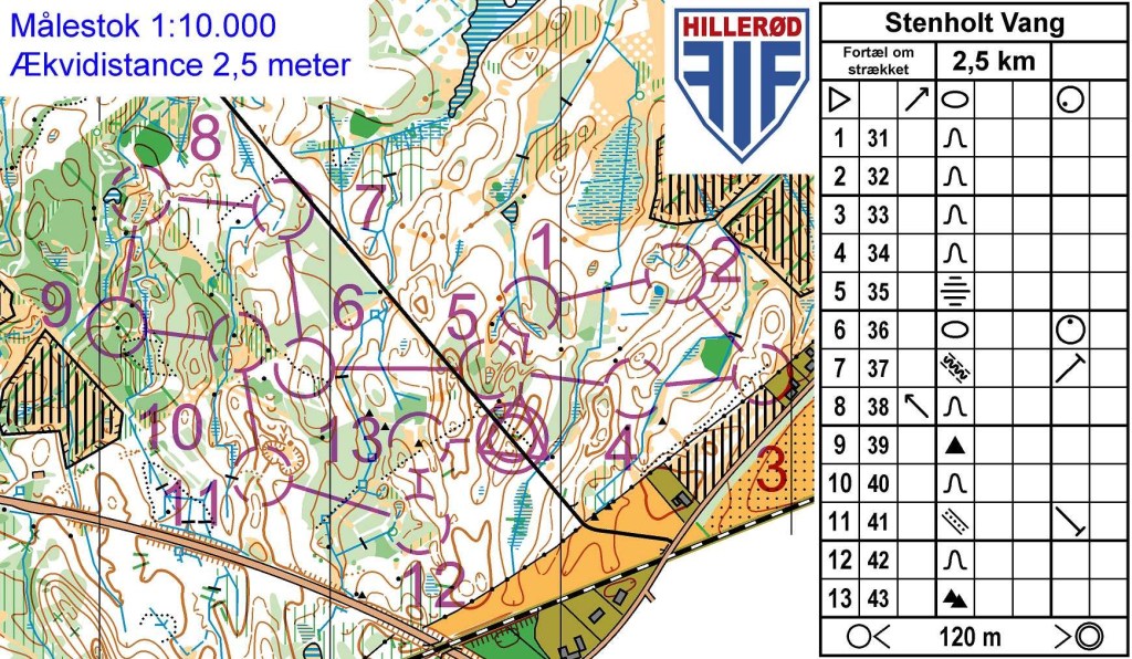Eksemplet på en bane i Stenholt Vang er lavet til introduktion, og fra start til post 1 kunne fortællingen være: ”Der startes ud med en langstrakt høj på højre side, og først en mose og efter den en høj på venstre side. Der er en saddel mellem de to høje, herefter går det nedad med en lille lavning på højre side og en udløber på venstre side, mose med tæthed bag sig og en grøft foran, mod venstre slår grøften et knæk og den anden side er en lysning, som går ned til posten i slugten” – eller en mere enkel forklaring: ”Der er et pas mellem to høje, hvorfra terrænet skråner ned til en mose, i den venstre kant af mosen er en lysning, som kan følges ind til posten”.