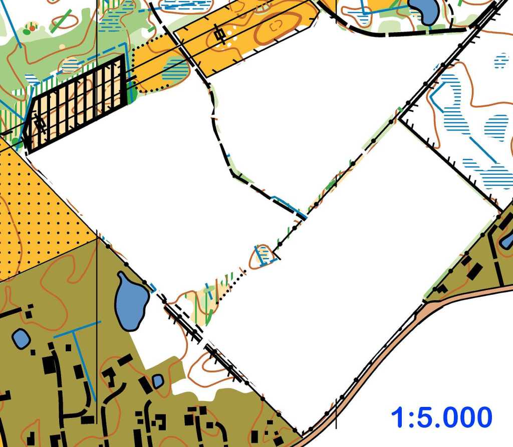 Løberne får et blankt kort over et lille afgrænset område med få og tydelige terrængenstande (se eksemplet i St. Dyrehave). Løberne skal så tegne deres eget kort over området.