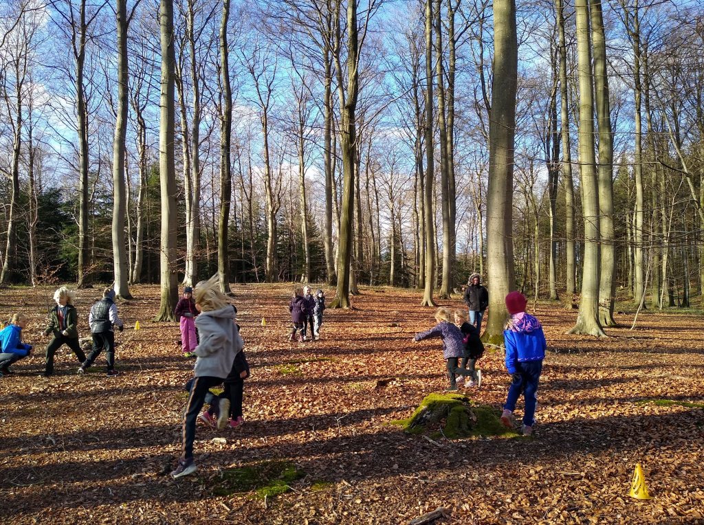 Alt underlag kan bruges, men lav meget gerne legen i skoven så børne lærer at bevæge sig i terrænet